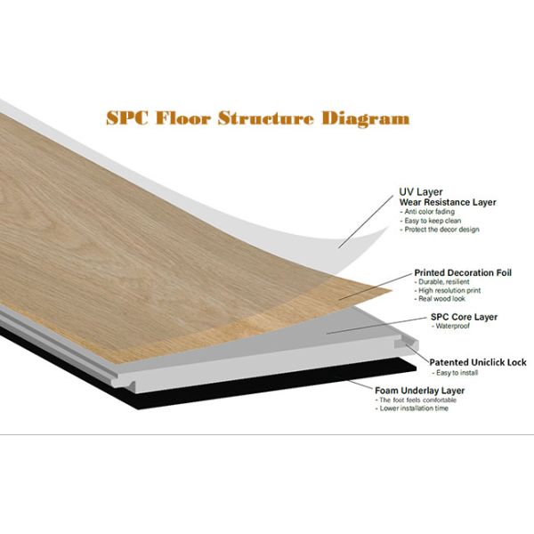 SPC FLOORING ADVANTAGES ,1. SPC flooring is stable under hot temperature 2. The UV coating makes SPC flooring long-lasting and scratch resistant.3. The property of waterproof makes SPC flooring good for kitchen and bathroom area.